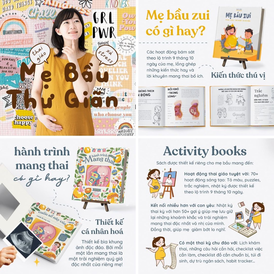 Ngoài việc tạo nên sợi dây buộc tình yêu, bộ Sách Hoạt Động còn giúp Mẹ giải tỏa căng thẳng, mệt mỏi trong thời kỳ mang thai thông qua những hoạt động vô cùng thú vị. Hãy cùng khám phá bên trong cuốn sách đặc biệt này để hiểu rõ hơn về nội dung thú vị mà Mẹ và con sẽ trải nghiệm.